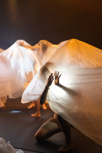 „أكثر قتامة. Dunkler Ton“ ist eine Performance, die mit den Grenzen von Sprache und Bedeutung spielt, indem sie drei Stimmen – eine intellektuelle, eine spiegelnde und eine betroffene – zusammenführt, die von einem „dunklen Ton“ begleitet werden. Diese Stimmen tanzen, spielen und verschmelzen miteinander, entbunden von festen Definitionen und tradierten Narrativen. Sie gehen über das übliche Sprechen über Geschlecht, Sexualität, Herkunft und Zugehörigkeit hinaus und schaffen einen Raum für das, was jenseits der Worte existiert.