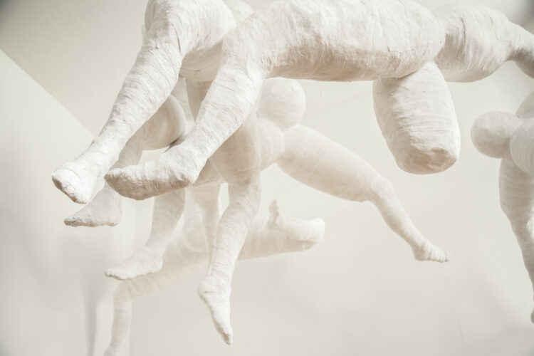 [EN] This work corresponds to the thought that runs through the thought and text corpus of the French philosopher and psychoanalyst Luce Irigaray: the other bodies, the other zones, the other imaginary do not yet exist; the new, different relationships between the sexes do not yet exist. They are coming. They float in space, ephemeral, fluid. “Now, then, it is necessary to turn all sense from top to bottom, from back to front. Then it is necessary to radically shake the sense and to transfer into it, to re-import the crises that its ‚body‘ has to go through in its inability to say what shakes it. Also, to consciously insist on those white spots in the discourse that remind of the places of their exclusion which in their silent plasticity ensure the connection, the linkage and the coherent expansion of the established forms of discourse.”[1]
